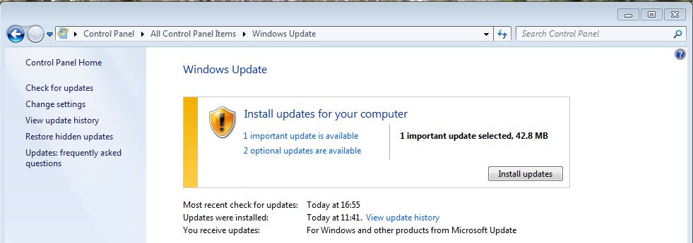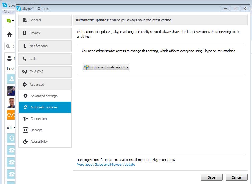 You will also need to keep a close eye on Windows Update. An update to Skype version 7.0 will probably be automatically selected as an Important update – I wonder why! You can de-select the update (un-tick it) and stop it returning by right-clicking on it and selecting Hide update: